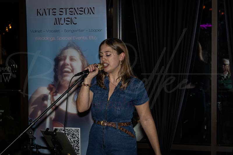 I’m glad I did. From the first note, Kate had everyone’s attention. She creates her songs live on stage—playing violin riffs, recording them, adding layers of voice and sound, and looping it all together into full, rich tracks. Watching her stack each layer in real time is like watching a musical puzzle being solved right in front of you.